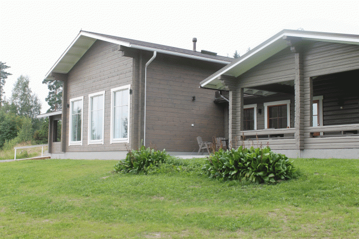Vasemmalla Juhlatila ja oikealla savusaunaosuus