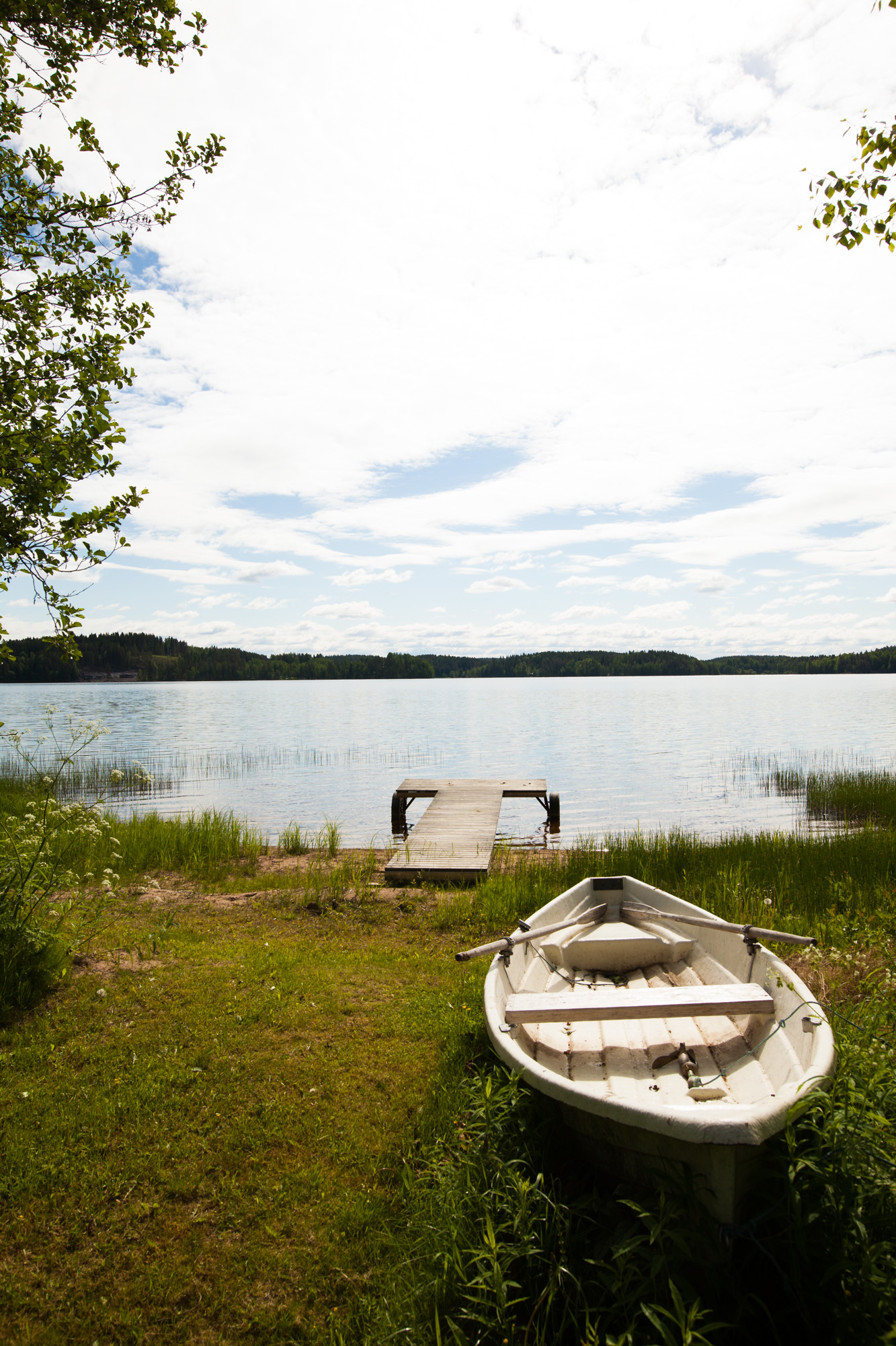 Mökin järvimaisema Kyrösjärvelle. Mökkiin kuuluu oma soutuvene
